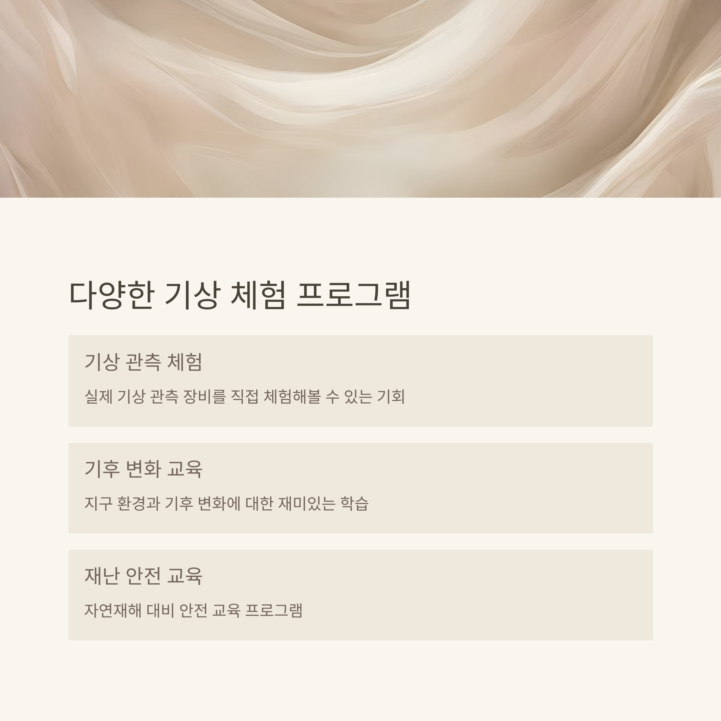 기상 관측 체험, 자연 재해 대비 교육 등 흥미로운 프로그램이 가득합니다.