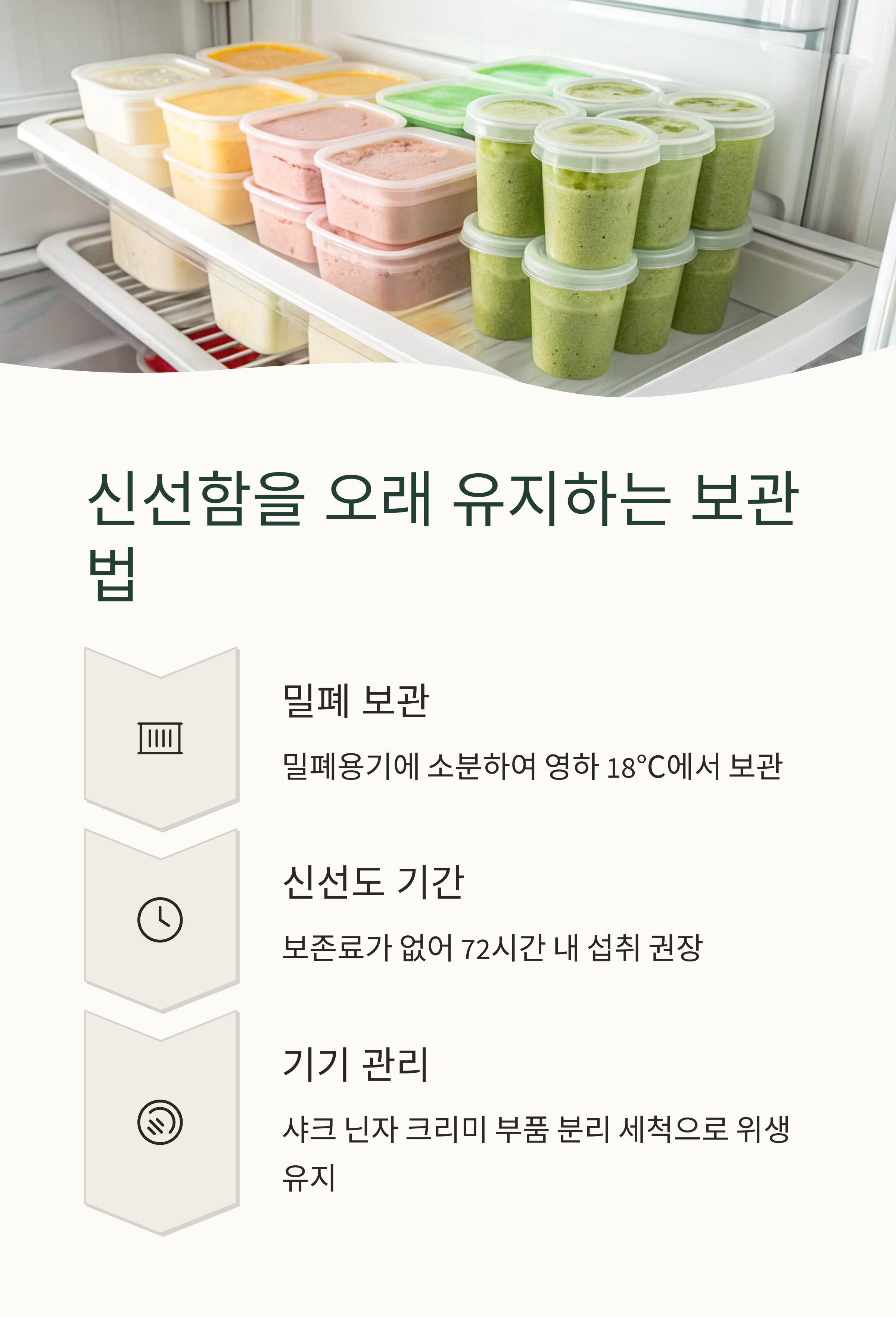 - 샤크 닌자 크리미 전용 용기에 옮긴 후 12시간 이상 냉동 필수